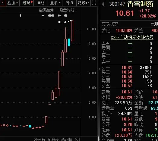 医药生物板块多股逆势涨停,凯普生物、广生堂、香雪制药、兰卫医学收获20cm的涨停板。其中香雪制药表现最抢眼,该股自7月31日以来,短短半个月不到的时间内累计涨幅达到2.14倍。